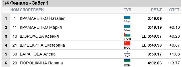 Мария и Наталья Крамаренко в лидерах. Баранова идёт третьей.