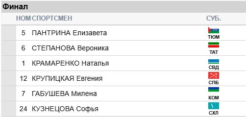 Никитина и Пантрина в лидерах, а за ними идут Шалабода и Степанова.
