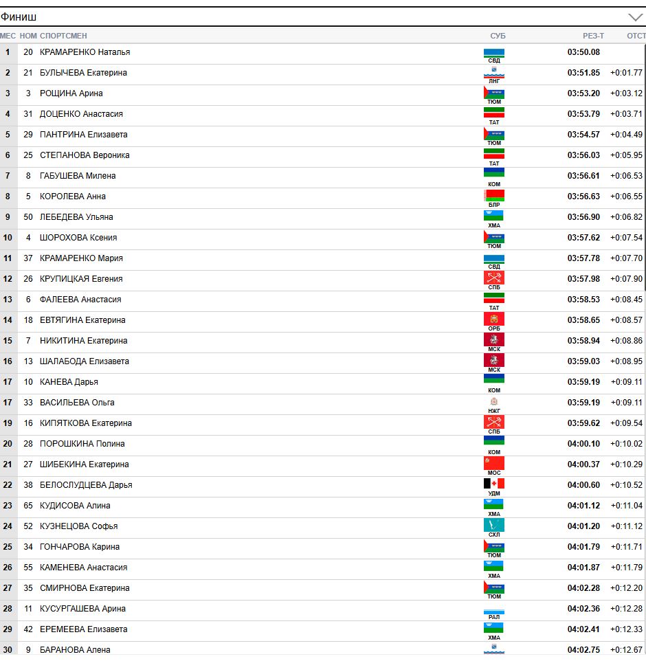Булычева в лидерах и уже оторвалась, за ней идут Лебедева и Крупицкая.
