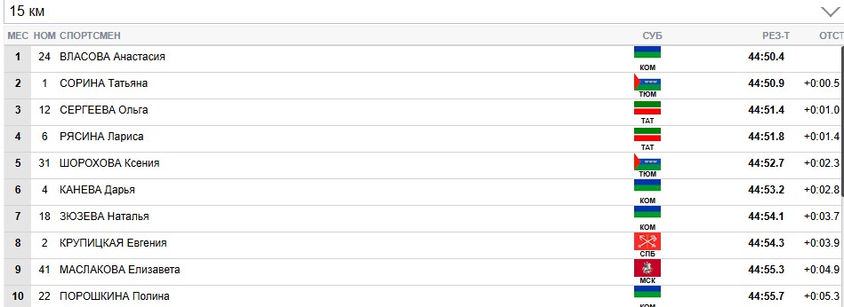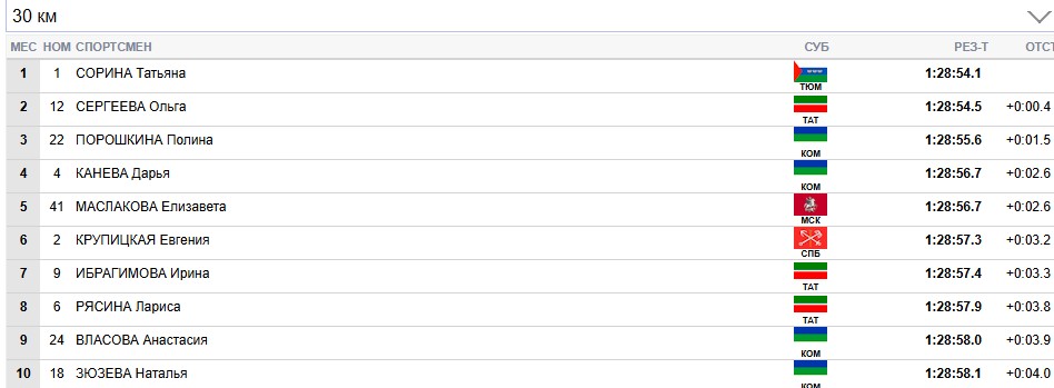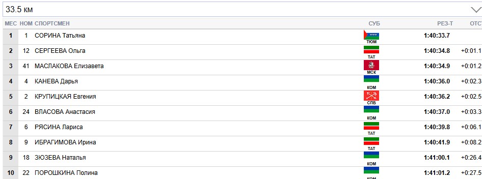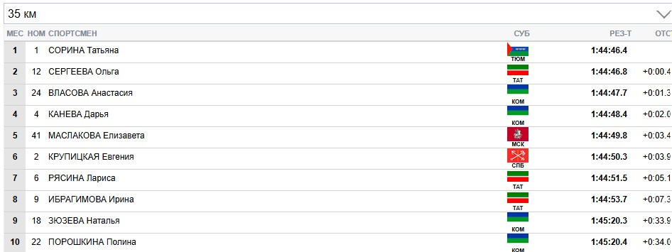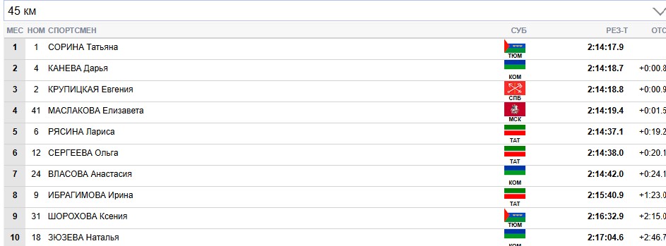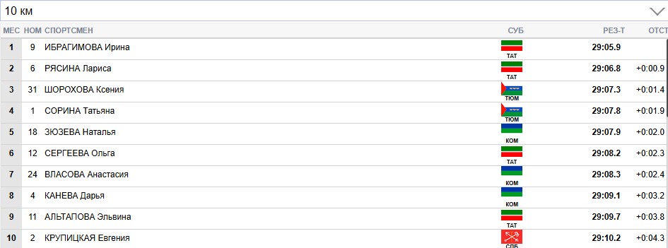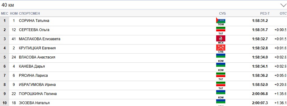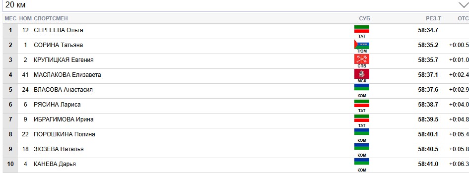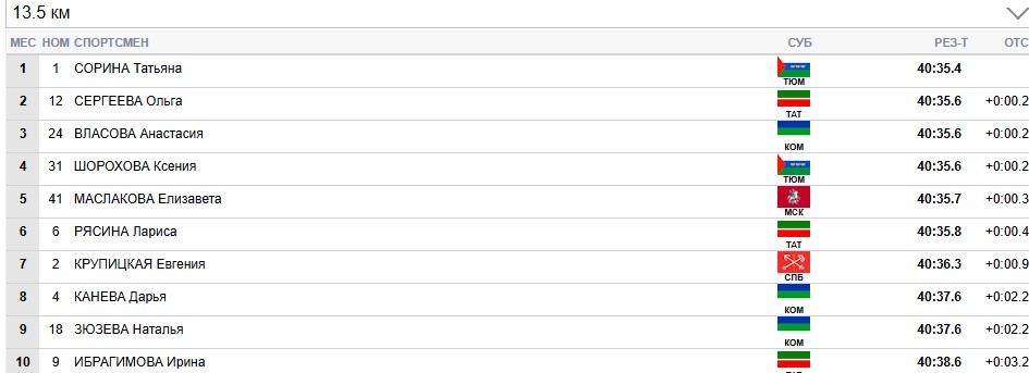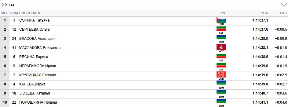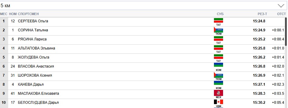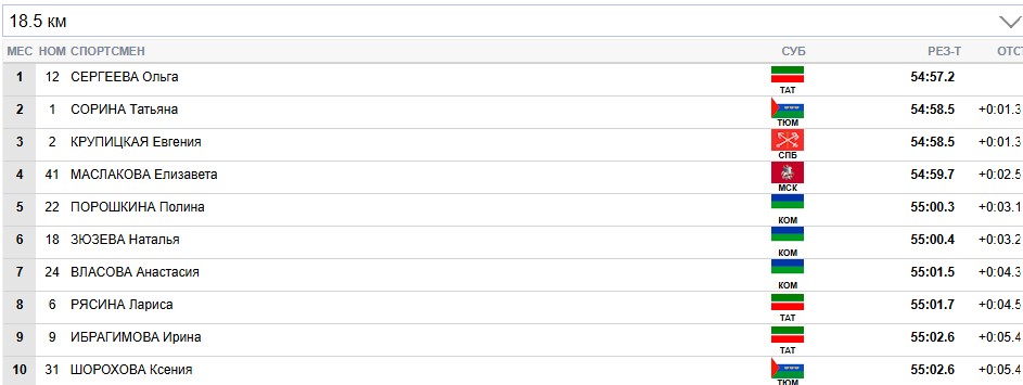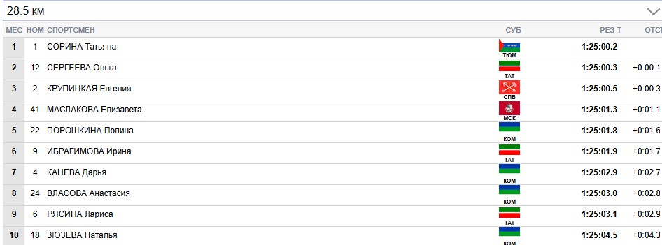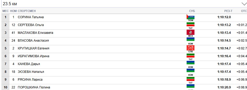 Сорина продолжает лидировать на всех отсечках, Сергеева вторая.