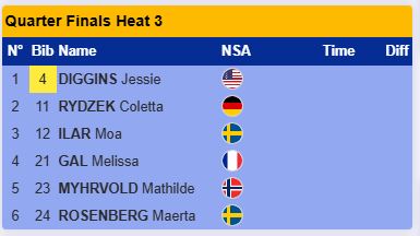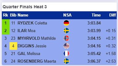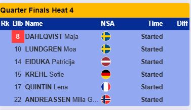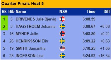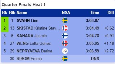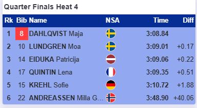 В этом четвертьфинале упала Андреасен и дальше прошли две шведки Дальквист и Лундгрен, которая в финишном створе опередила Эйдуку.