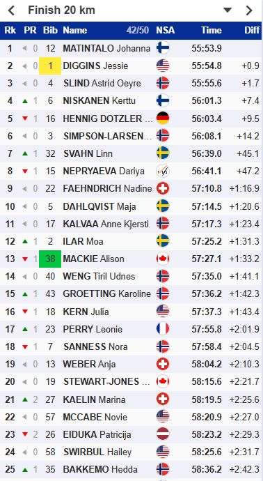 Астрид Слинд включилась и даже оторвалась от группы на 2 секунды. Диггинс - вторая, Илар - третья