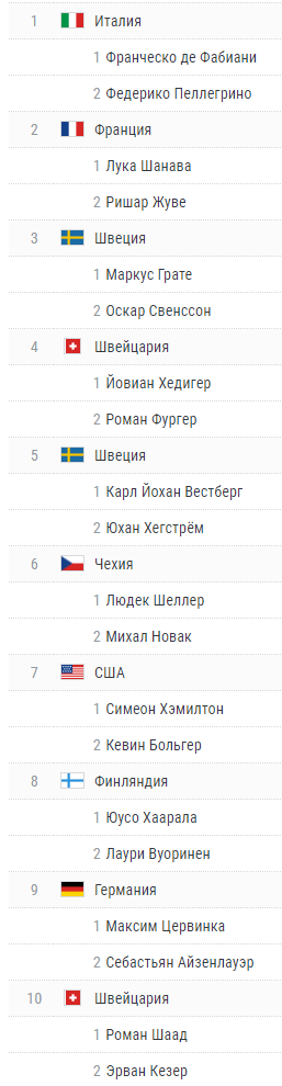 Да, действительно. Тройка после третьего круга - Норвегия (Томас Ларсен – Пол Троан Ауне), Швейцария (Йовиан Хедигер – Роман Фюргер) и Франция (Рено Же – Валентин Шовин)