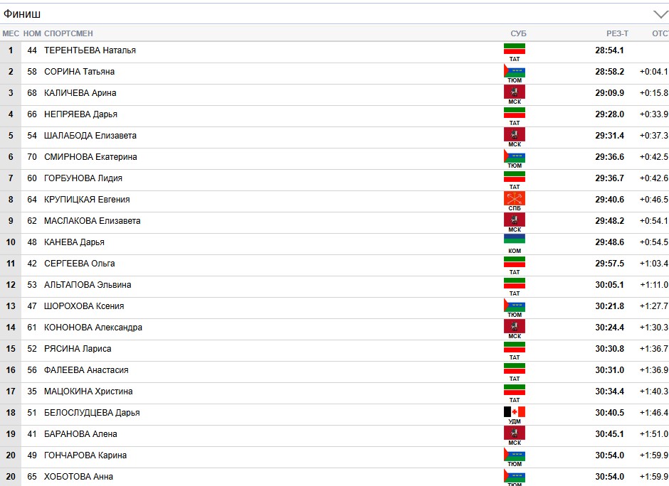 И всё же на финише Терентьева прибавила снова и Сорина финишировала на втором месте с отставанием в 4 секунды!
