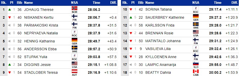 Йохауг сильно прибавила и сократила отставание от Нисканен до одной секунды.