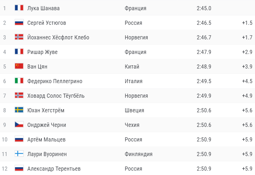 Сергей Устюгов финишировал вторым, оттеснив Клебо на третью строчку! А лидером является француз Лука Шанава