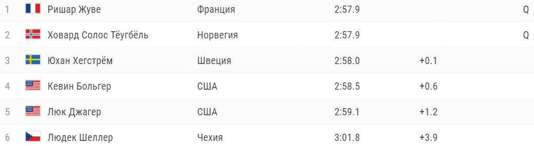 По итогам третьего четвертьфинала дальше квалифицировались француз Жуве и норвежец Тёугбёль