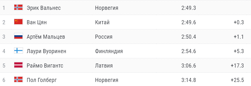 Восьмая текущая позиция у Артёма Мальцева, почти 6 секунд отставания от лидера