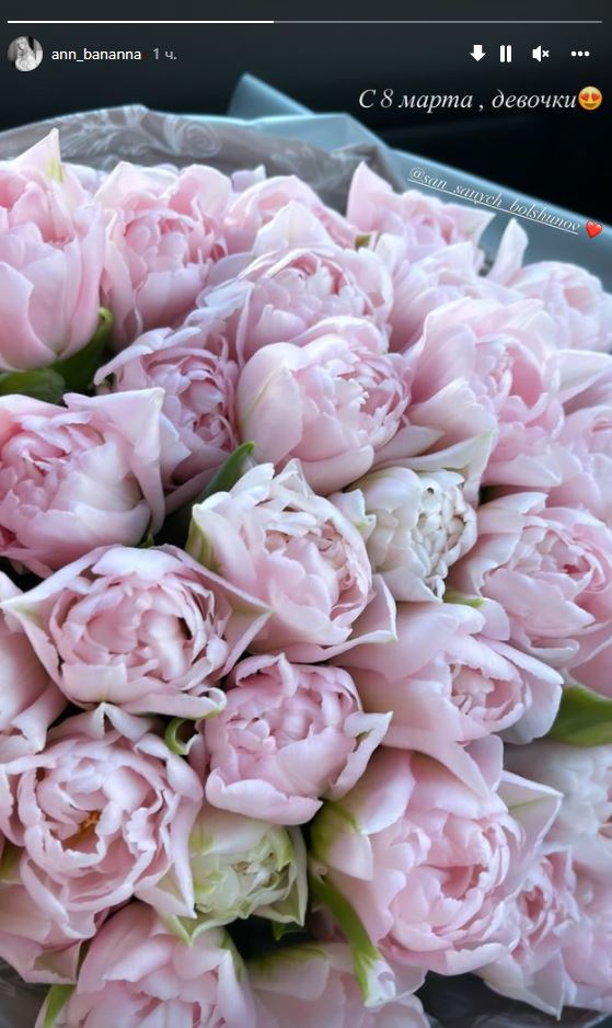 Анна Большунова показала букет, который получила от супруга на 8 Марта.