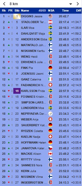 Штадлобер немного начинает отрываться от Дальквист в борьбе за третье место. Но это не удивительно, так как шведка - спринтер.