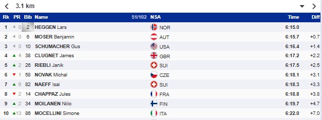 На отсечке 3.1 продолжает лидировать Хегген. А лучший из первой группы Стефан 11-й.