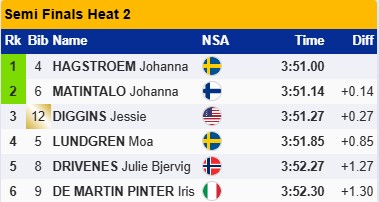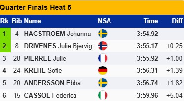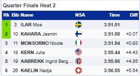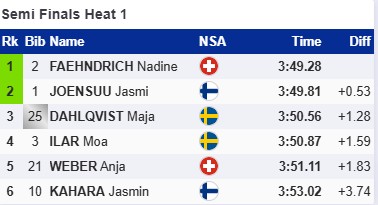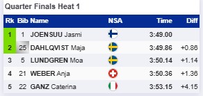 Йоенсуу уверенно выиграла этот забег, а Дальквист вырвала второе место у Лунгрен и напрямую вышла в полуфинал.
