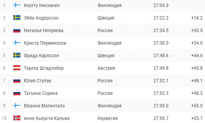 Невероятно! Кертту Нисканен финишировала первой, опередив шведка Эббу Андерссон на 18 секунд!