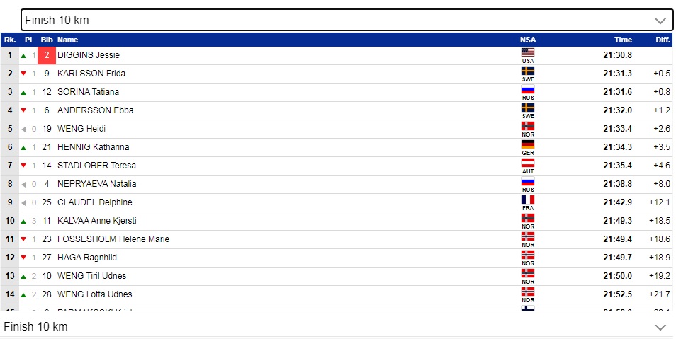 5. Криста Пярмякоски (Финляндия) +0.51.