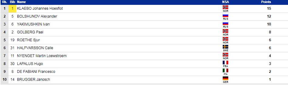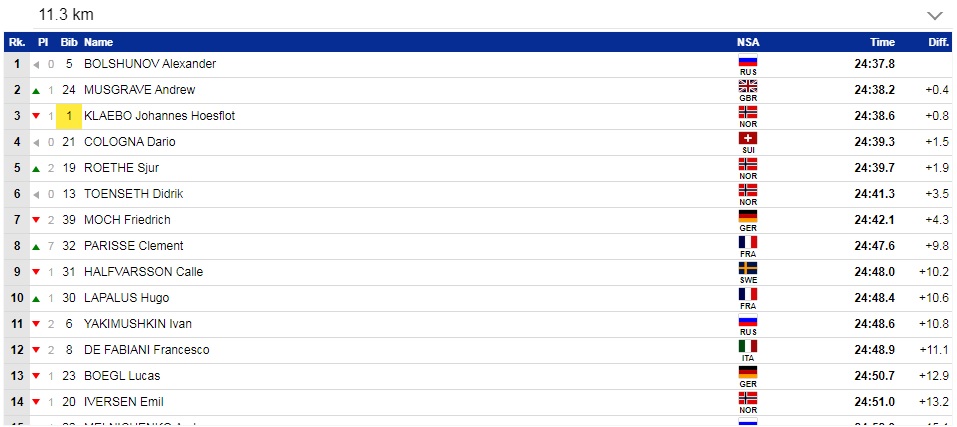 1. Йоханнес Клебо (Норвегия) — 37.02,0.