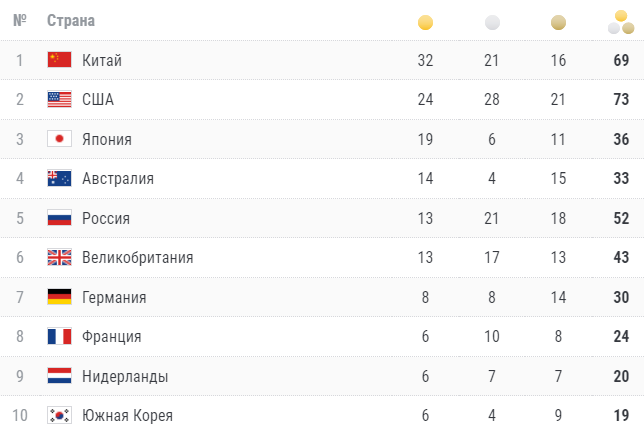 Во вторник, 3 августа, на Летних Олимпийсках играх в Токио было разыграно 26 комплектов медалей в 9 видах спорта