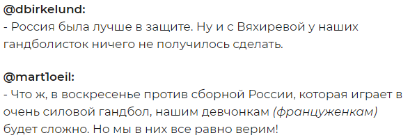 Сразу после матча, который завершился со счётом 27:26, болельщики скандинавской команды в англоязычном сегменте Twitter поделились впечатлениями от игры.