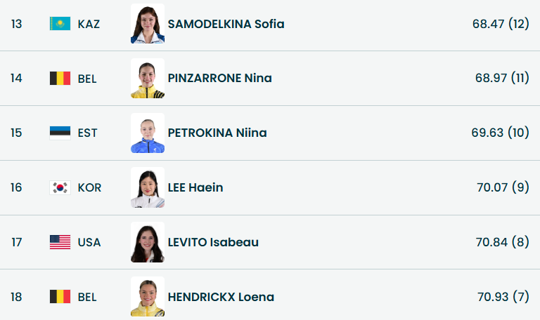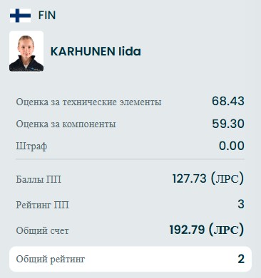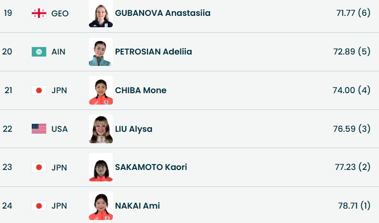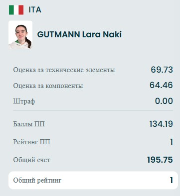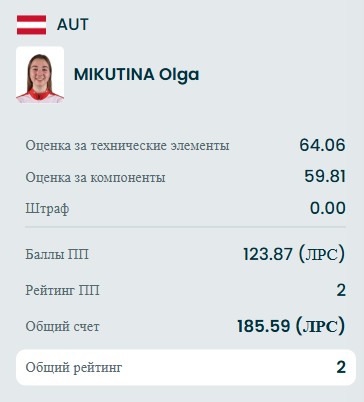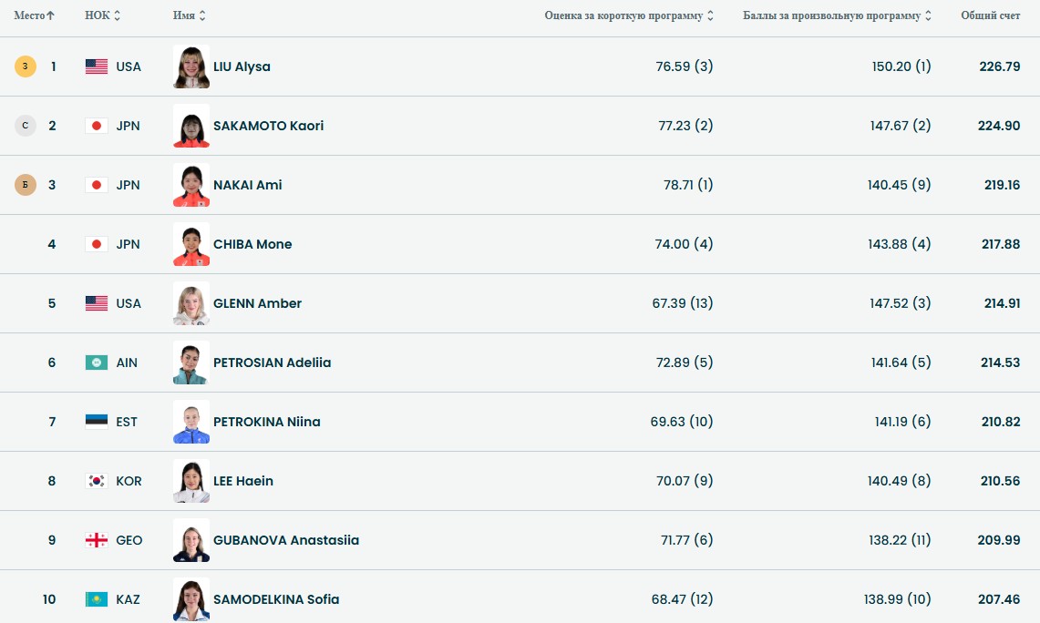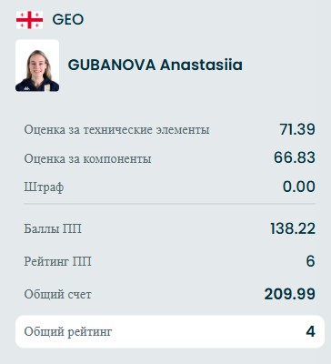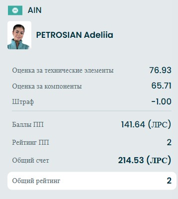 Даже прибавили Аделии 5 баллов судьи, но она всё равно вторая и впереди ещё 4 фигуристки.