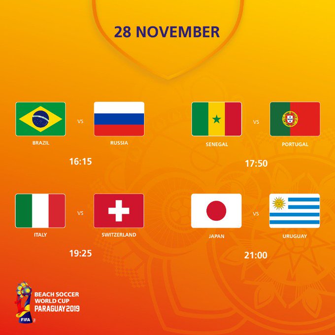 Раз уж я заговорил о других участниках 1/4 финала, зафиналю преамбулу полным расписанием сегодняшних (по времени Парагвая, МСК-6) матчей ЧМ по пляжному футболу:
