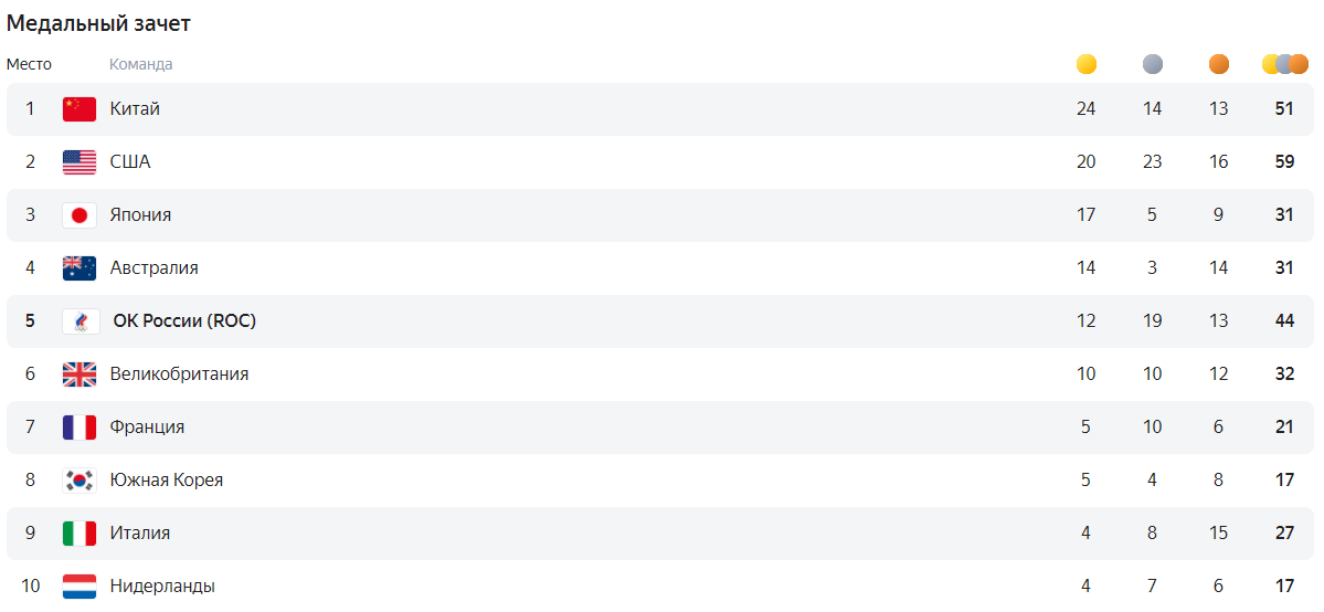 Россия опустилась на пятое место, США обогнали Японию: медальный зачёт ОИ-2020