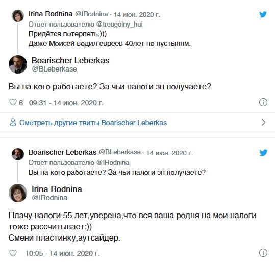 "Смени пластинку, аутсайдер". Словесная перепалка Родниной в твиттере