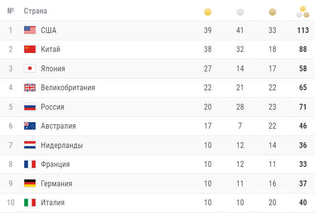 Медальный зачёт Олимпийских игр-2020