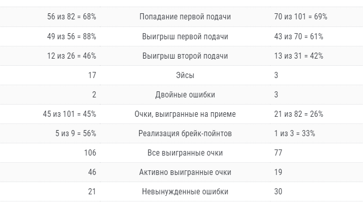 Уже на старте поединка стало понятно, что многочисленная публика, заполнившая Род Лэйвер Арену более чем наполовину, в своём подавляющем большинстве болеет за греческого теннисиста. Смутило ли это Даниила? Нисколько! Будучи верным своей игре, Медведев с самого начала показал, что готов доминировать в поединке. Единственное, что не получалось у россиянина в первых геймах – наладить удар с форхэнда. Мяч постоянно улетал за корт по длине и на этих ошибках Даниила соперник взял две свои подачи. Но пятый гейм стал переломным в первой партии. Медведев со счёта 0:30 заработал брейк-поинт и со второго раза сделал брейк! Вот тут уже Даню было не остановить. Стала получаться и атака справа, и эйсы пошли один за другим (всего их будет 17 в матче). В итоге Медведев удержал свою подачу, на которой у Циципаса не было и шанса, и выиграл первый сет со счётом 6:4.
