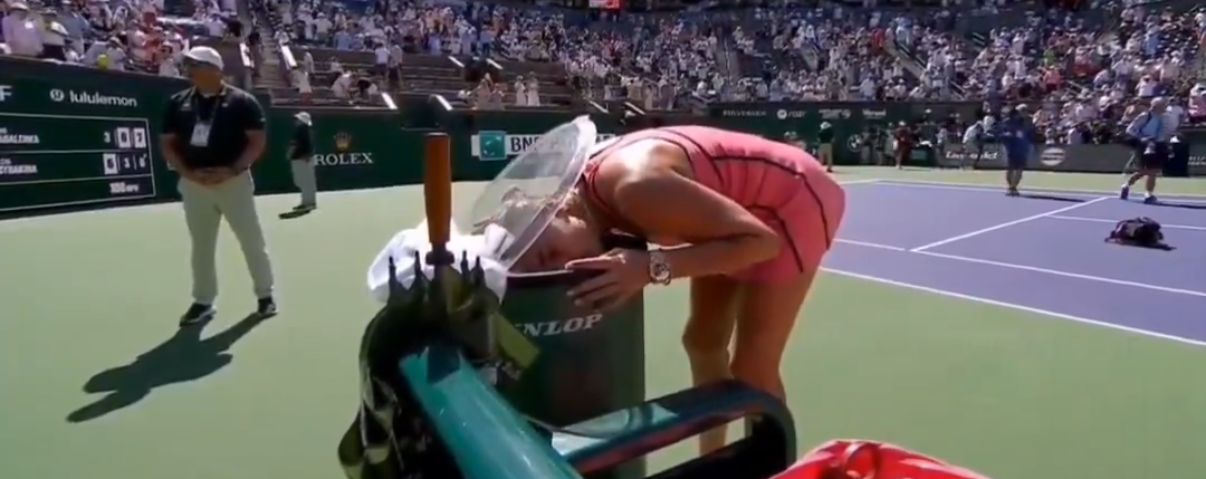 Sport.ru / Теннис. Четырёхкратная победительница турниров "Большого шлема" и первая ракетка мира, белорусская теннисистка Арина Соболенко, выиграла турнир WTA-1000 в Индиан-Уэллсе (США). После финального матча спортсменка подошла к своей скамейке и охладила голову в контейнере со льдом.