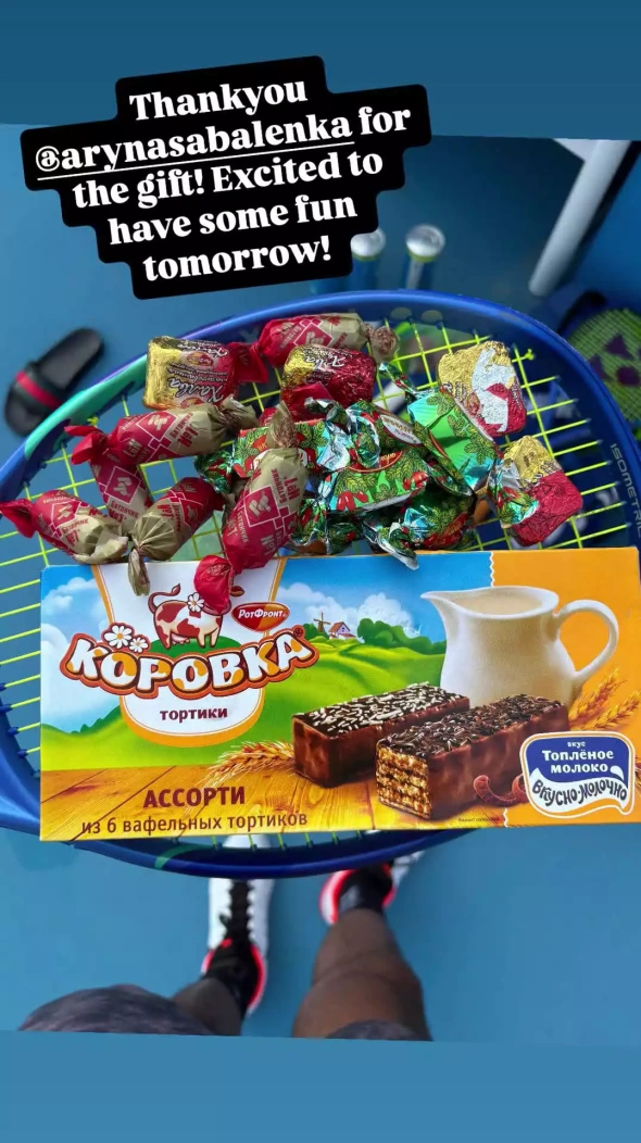 Кирьос поблагодарил соперницу за подарок в соцсетях, опубликовав фото с конфетами и написав: "Спасибо за презент! С нетерпением жду завтрашнего веселья!"