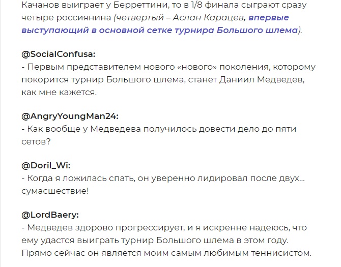 Посетители англоязычного сайта ATPTour считают, что Медведев является одним из главных фаворитов турнира. Вот какие комментарии можно прочитать на портале: