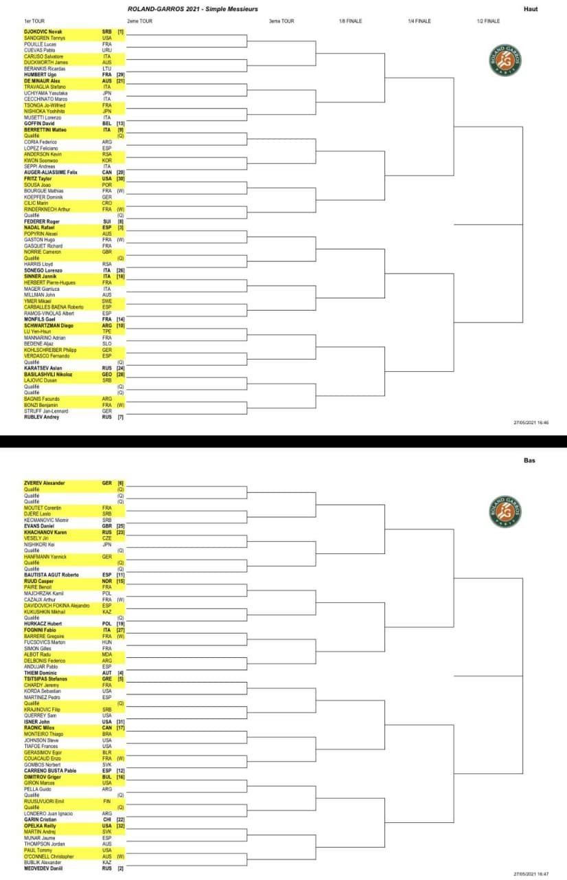 Обнародована сетка "Ролан Гаррос" в мужском разряде. ФОТО