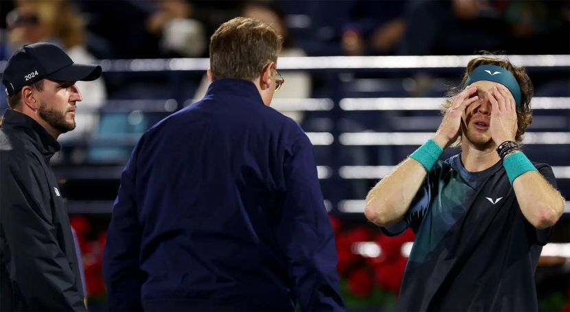 1 марта в полуфинале турнира категории ATP-500 в Дубае между Андреем Рублёвым и Александром Бубликом шёл третий сет. Первые две партии завершились с одинаковым счётом (7:6) на тай-брейке, но с разными победителями. И в третьем сете дело близилось к тай-брейку. Однако в решающем розыгрыше 11-го гейма у россиянина сдали нервы: когда судья на линии зафиксировал у Рублёва аут, Андрей подбежал к арбитру и на повышенных тонах высказал тому всё, что он об этом думает. Успокоившись, Андрей под свист со стороны зрителей пошёл на перерыв.