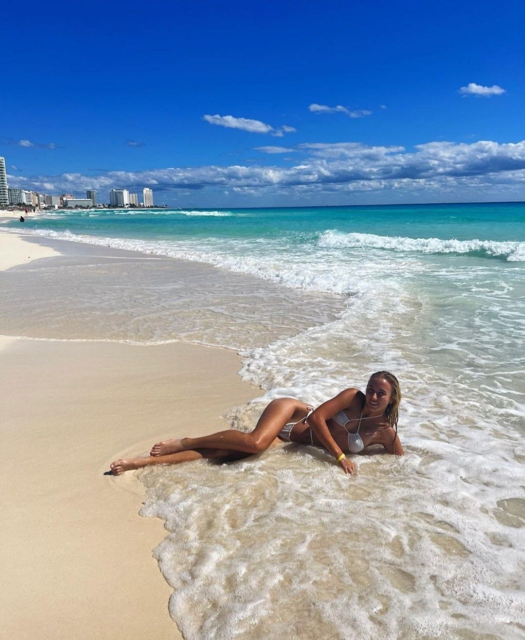 Спортсменка показала, как она отдыхает на пляже в Канкуне (Мексика).
