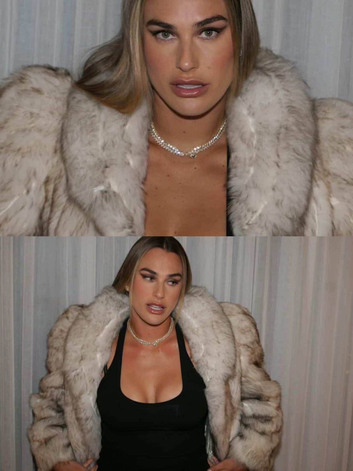 В чёрном обтягивающем костюме и надетой поверх шубе Соболенко посетила неделю моды в Милане.