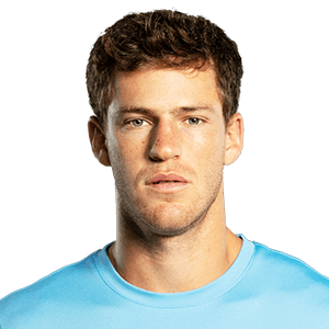 Хороший розыгрыш провёл сейчас Шварцман. Немного Диего вышел вперёд от задней линии и точно пробил под левый угол корта.