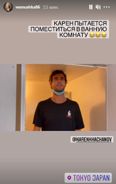 "Карен пытается поместиться в ванную комнату", — написала Веснина в сторис Instagram.