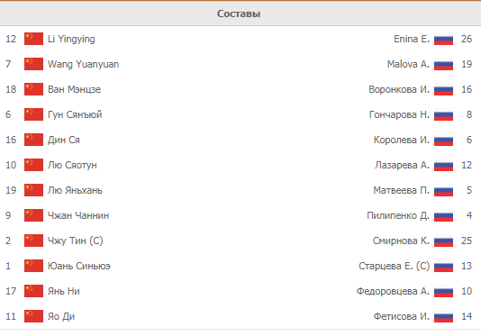 | Китай | 2 | : | 3 | Россия |