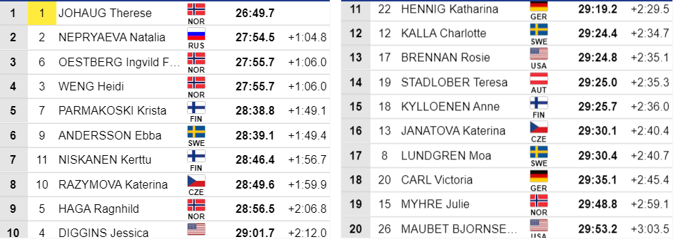 А Пармакоски оторвалась от Хаги и Диггинс. Первая пятёрка уже фактически определена.