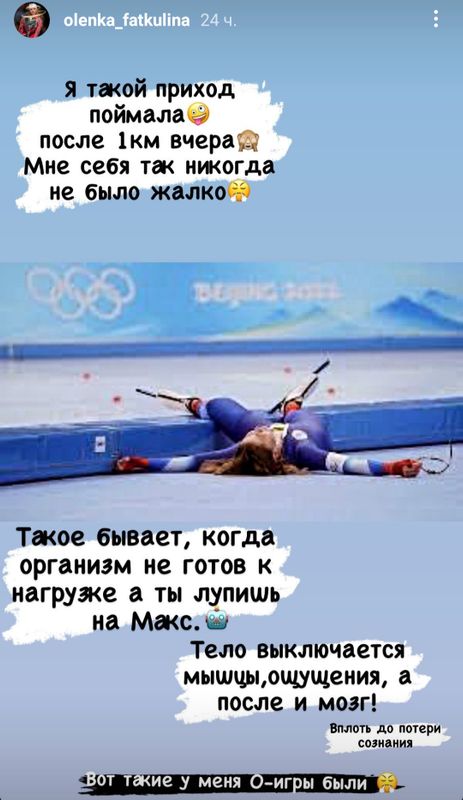 Сегодня, 19 февраля, спортсменка, которая была знаменосцем сборной России на церемонии открытия Игр-2022, поделилась со своими подписчиками воспоминаниями о своих олимпийских забегах в Пекине.